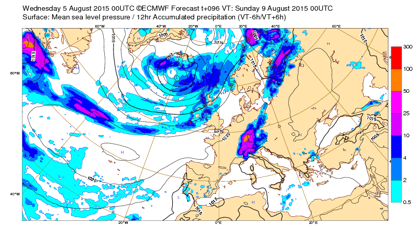 Como podemos observar, o modelo ECMWF prevê aguaceiros dispersos no sul da Península Ibérica, no próximo domingo.